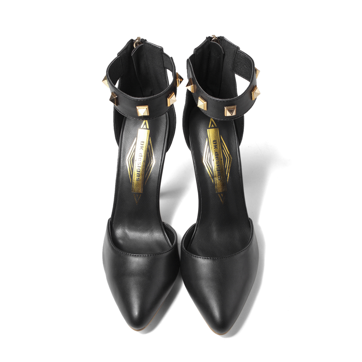 As always a pair of black high heel is a very versatile shoe, so when paired with a mid length skirt or tailored pants these black high heels with studded ankle strap will always look chic and be comfortable to wear when you are in the office during the day or be out for dinner at night.